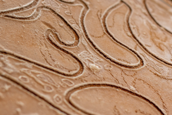 At Oerol 2025, Guardians of the savory became the first public sharing from the artists selected for Transitioning LANDscapes — a collaborative artwork grown in place at organic sheep farm De Zeekraal working alongside the owners: the Bakker family. The installation centred on a sculptural gateway and a maze assembled from green produce crates, inviting audiences to move slowly, listen and look as salt traced and re-traced the surface each day. The piece presented two faces in dialogue: Dávid Koronczi’s relief, inscribed with fictional “salty tags,” and guest artist Erik Pánči’s counter-relief, informed by his painter’s eye and interest in time’s shifting textures.