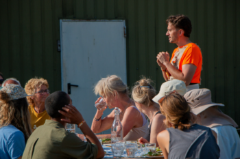 Collaboration sat at the heart of the process. Working on a working farm shaped everything: the daily rhythms, the conversations with volunteers, and the way the piece sat — visibly — between art and place. As Dávid reflects: “Oerol offered a unique context: a farm, amazing people, and a community that made the merge of location and art possible.”