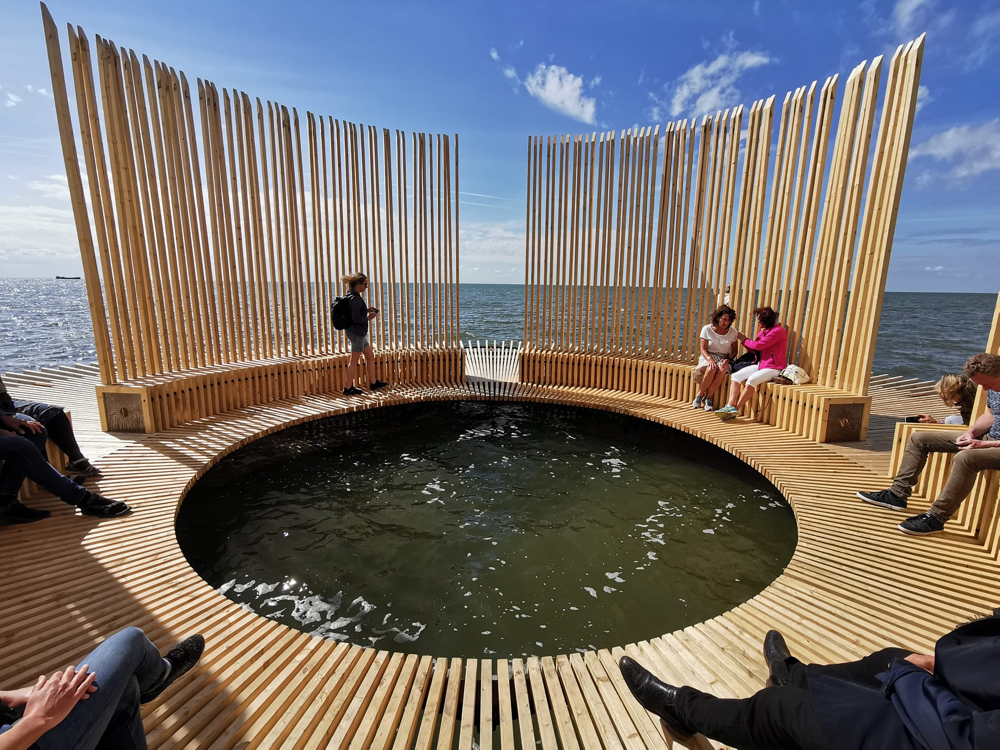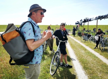 Bikes were the main transport as the group moved between meetings and site visits, taking in works such as De Streken by Marc van Vliet, a tidal installation dedicated to Oerol founder Joop Mulder, which reveals and conceals itself with the changing water level. Assembly of Trees by Elmo Vermijs and EXIT by Circumstances / Piet Van Dycke offered different perspectives on how natural and built environments shape performance and installation, while Tussenland by Sofie Doeland played with the idea of thresholds and transitional spaces.