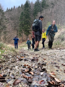 The mornings were spent walking with hydrologists and volunteers from Kvapka, who map the flows of rainwater and soil, teaching practical methods of retaining and redirecting it. Forest paths and high meadows revealed another layer through the voices of My sme les (“We Are the Forest”), the civic initiative whose campaigns have shifted debates around Slovakia’s national parks. In between, partners met rangers from the Malá Fatra National Park and visited local producers — including Kofola, which drills into mineral reserves, and Leros, a herbal processor — to better understand how industry and ecology are intertwined in everyday life.